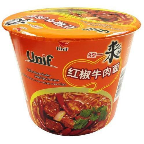 Unif bowl instant noodles with artificial roasted beef flavour.Size: 110g Ingredients: Noodles: enriched wheat flour, refined palm oil, starch, sal...