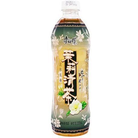 康师傅茉莉花茶加糖。 规格: 500ml 成分:水、茉莉花茶(茉莉花、绿茶叶、水)(60%)、糖(4%)、酸(E330)、抗氧化剂(E300、E316)、膨松剂(E500)。 中国产品